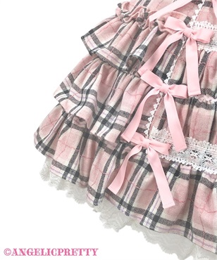 たっぷりのフリルに包まれて、寒い冬もおめかしできちゃうジャンパースカートです。