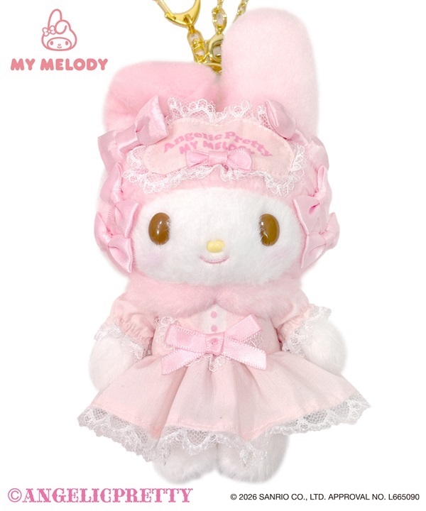 DREAMY MY MELODY柄の中に描かれたマイメロディのぬいぐるみチャーム。