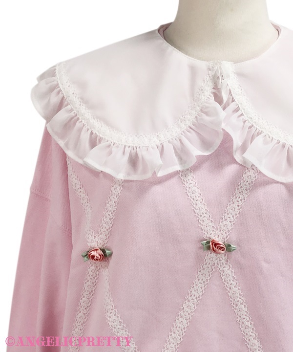 小さなローズモチーフのデコレーションが可愛いプルオーバー。