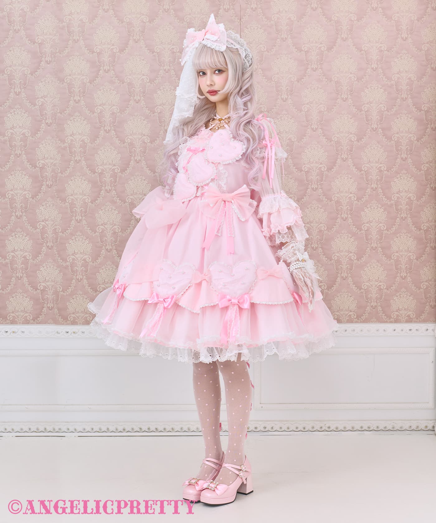 Cutest Heart Dress Set ¥104,500 カチューシャ、Dress、エシャルプ風ブローチの3点Set